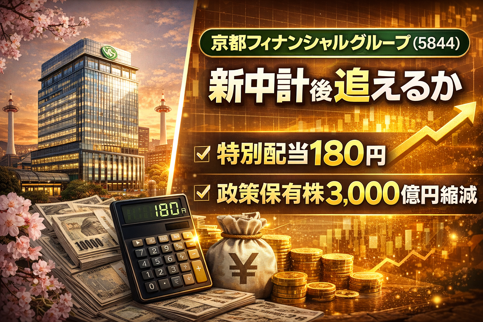 京都フィナンシャルグループ(5844)株は新中計後も追えるか 特別配当180円と政策保有株3,000億円縮減の持続力を点検