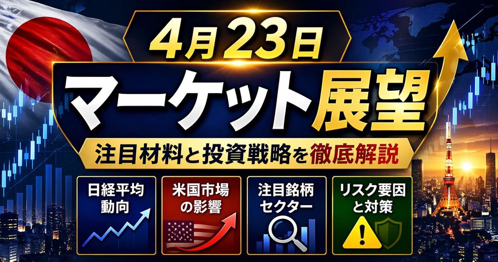 4月23日の東京市場で朝から追いたいのは、次の4点です。