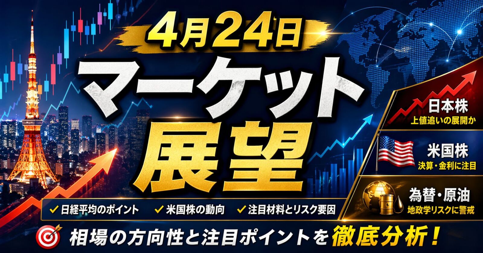 ここがポイント: 4月24日は「上がるか下がるか」より、6万円挑戦後の利益確定をどこまで吸収できるかを見る日です。指数の戻りより、値下がり銘柄数の縮小や半導体・グロースの下げ止まりの方が地合い確認には役立ちます。