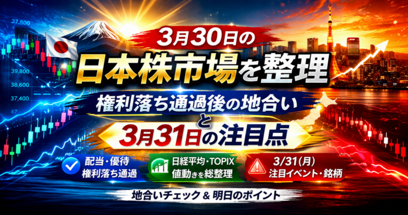 3月30日の日本株市場を整理 権利落ち通過後の地合いと3月31日の注目点