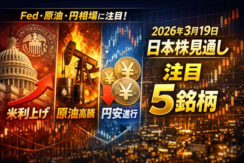2026年3月19日の日本株見通し Fed・原油・円相場を踏まえた注目5銘柄