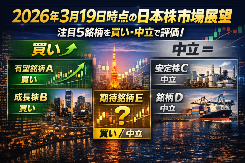 2026年3月19日時点の日本株市場展望 次の現物市場は3月23日、注目5銘柄を買い・中立で整理