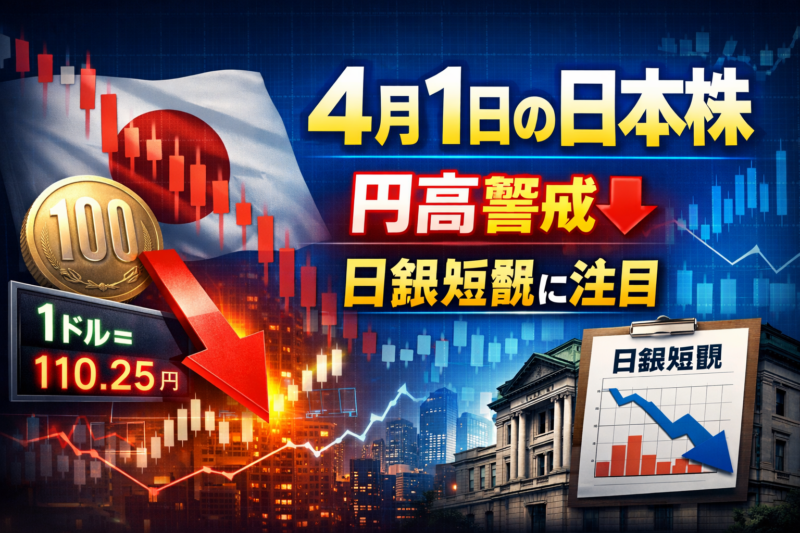 2026年3月31日の日本株は、半導体や電線株の下落が重く日経平均は4日続落した。4月1日は円高の進み方、日銀短観、年度初の資金フローが地合い改善につながるかが焦点になる。 -