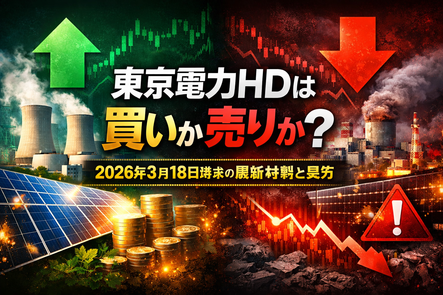ひと言結論: 2026年3月18日時点の東京電力HDは、柏崎刈羽6号機の営業運転入り期待が短期株価を押し上げやすい一方、通期では巨額赤字・無配・福島関連費用の不確実性が重く、新規で追いかけて買うよりは慎重、短期で上がった場面は利益確定を意識したい銘柄です。